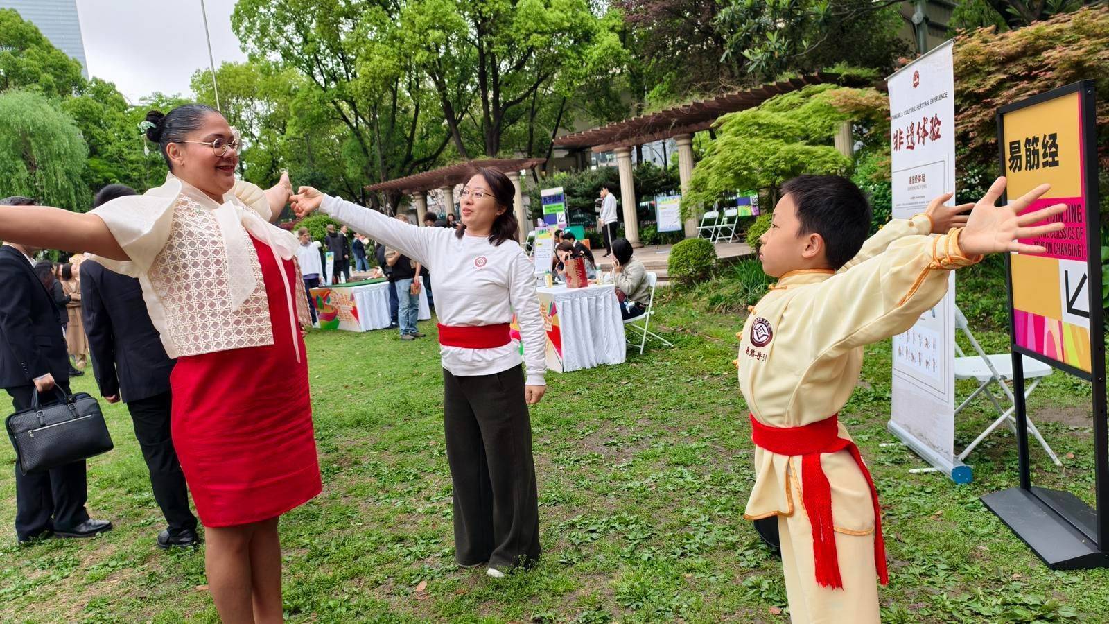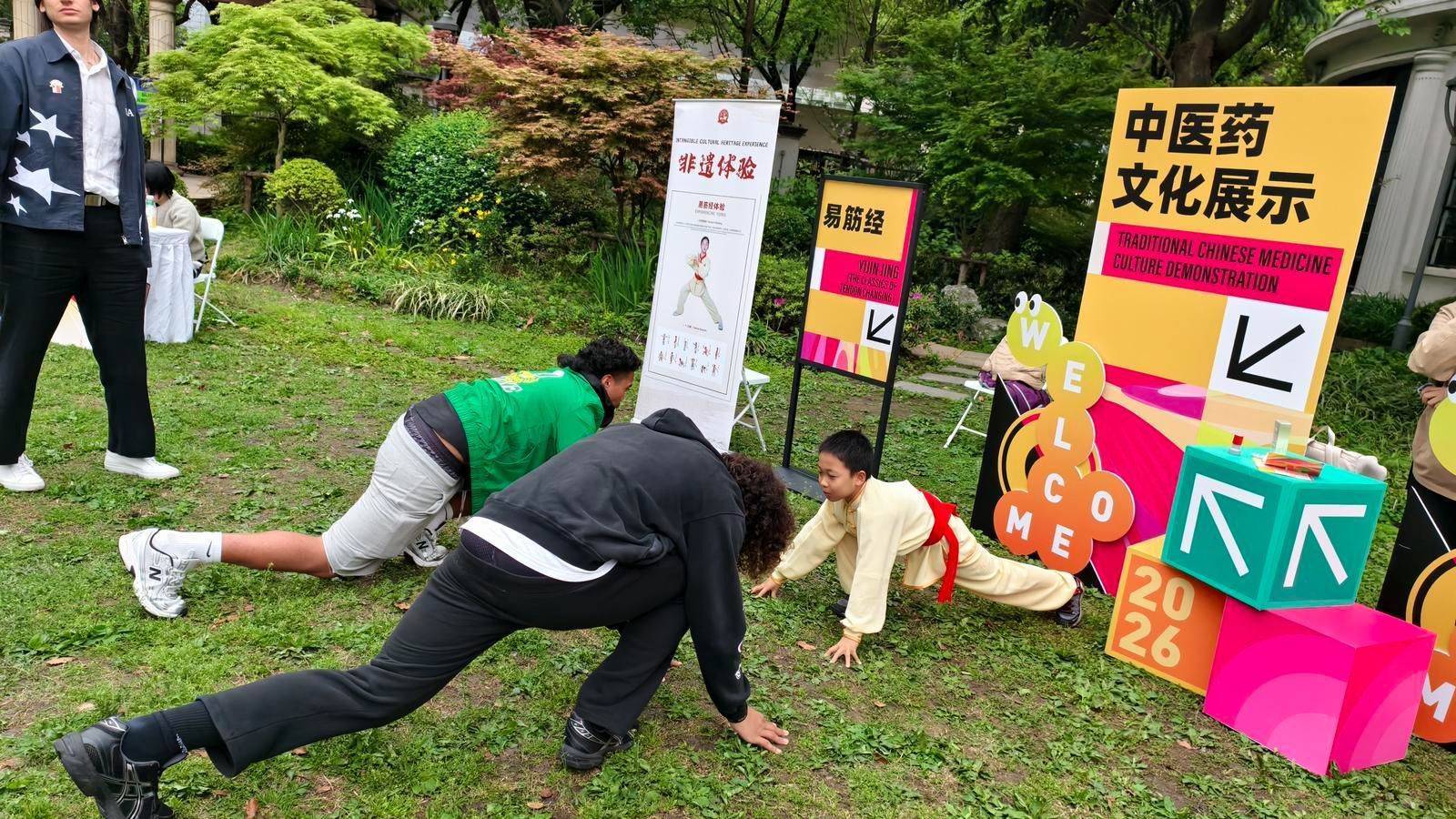 中国青年报客户端讯(中青报·中青网记者余冰玥)4月13日,“沪动青春嘉年华”在上海市举行。作为中美“乒乓外交”55周年纪念大会暨中美青少年体育交流系列活动的重要组成部分,活动由中国人民对外友好协会、国家体育总局主办,来自美国的乒乓球、橄榄球运动员及中国高校的百余名学生参加。在活动的中医药文化易筋经导引法体验区,国家级非物质文化遗产代表性项目“中医诊疗法(古本易筋经十二势导引法)”第六代传承人严正和引导美国青年了解中医技法,感受中华优秀传统文化的独特魅力。